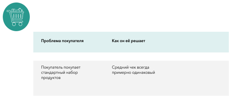 В FMCG основной фокус на повторном потреблении, потому что чаще всего покупатели не ищут новый товар, а покупают стандартный для них набор продуктов. Это приводит к тому, что средний чек всегда примерно одинаковый.