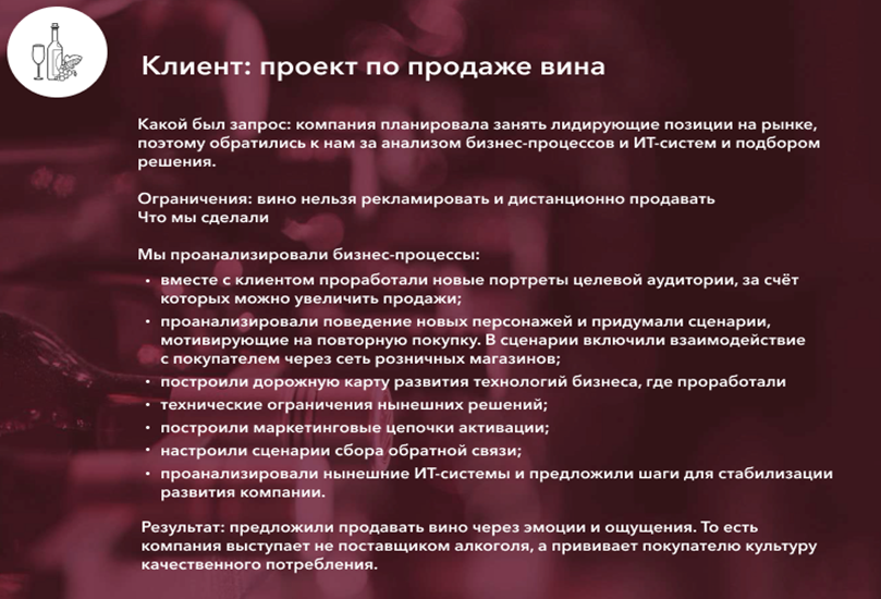 Мы недавно закончили проект, где помогали компании продавать товар с широким ассортиментом, из которого покупателю трудно что-то выбрать самостоятельно.