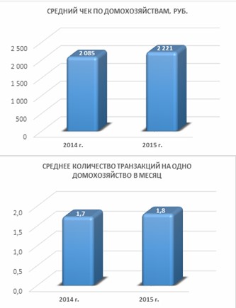 Усредненный показатель суммы одной онлайн-покупки, совершенной среднестатистической российской семьей, составлял в 2015 году 2221 рубль, что на 6,5% выше, чем в 2014 году. При этом среднее количество покупок в месяц на одну семью также выросло с показателя 1,7 в 2014 году до 1,8 в 2015 году.