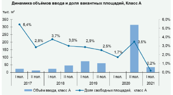 По данным JLL, в 2020 году спрос на склады в Москве и Подмосковье вырос на 20%, до 1,67 млн кв. м, а в первом полугодии 2021 года показатель достиг 1,3 млн кв. м, практически достигнув годового объема 2019 года. При этом свободных площадей на рынке осталось не более 1,6% — это минимальное значение за последние шесть лет.