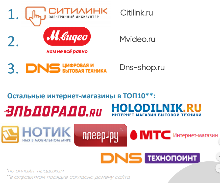 Лидирующей площадкой в категории является Citilink.ru. Доля этого магазина по объему онлайн-продаж составляет 23%.