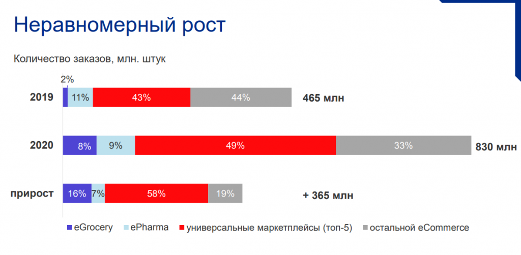 Впрочем, это характерно для всего рынка: прирост продаж на маркетплейсах в прошлом году составил 58%.