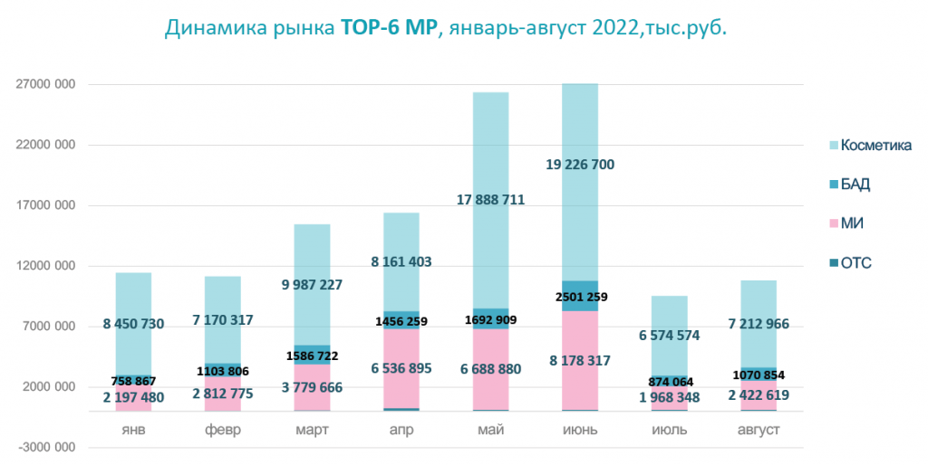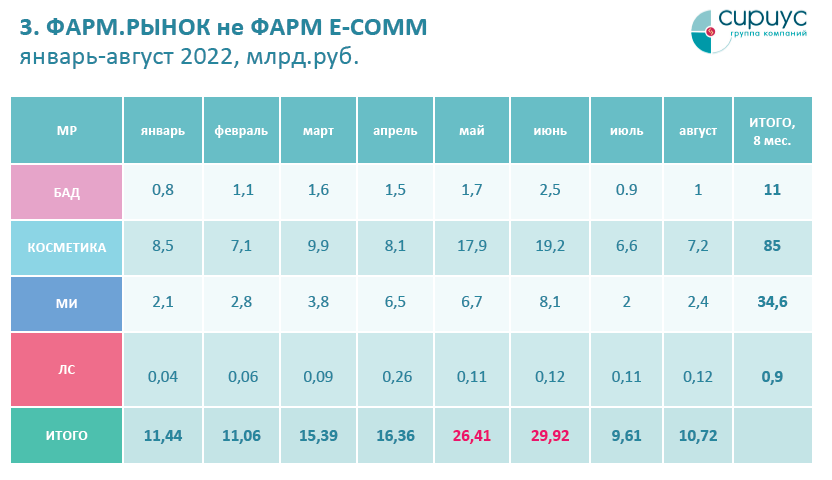 • Косметика - 84,6 млрд рублей, в том числе аптечная косметика - 10 млрд рублей.