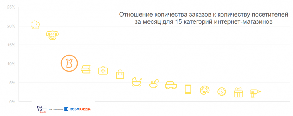 Зато конверсия сектора одна из самых высоких - 10%. Ближайшие показатели у магазинов книг и дисков и магазинов медицинских товаров - 8,5% и 8% соответственно.