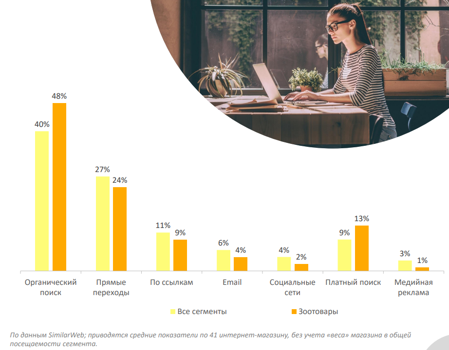 Доля органических поисковых переходов сектора составила 48% против 40% в среднем по российскому рынку eCommerce.