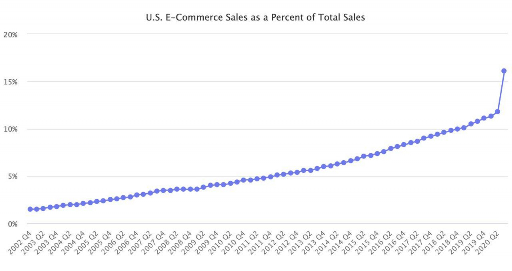 На фоне закрытия офлайн-магазинов доля продаж eCommerce в стране взлетела с 12 до 16-17%.