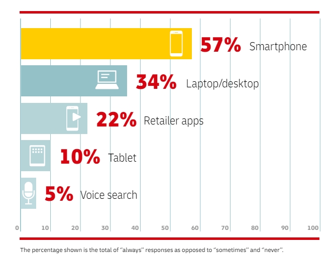 Уже большинство онлайн-покупателей (57%) используют смартфоны в качестве основного устройства для просмотра и покупки товаров. Это, безусловно, влияет на то, как должны быть представлены товары на сайтах и структурированы каталоги интернет-магазинов, считают эксперты.