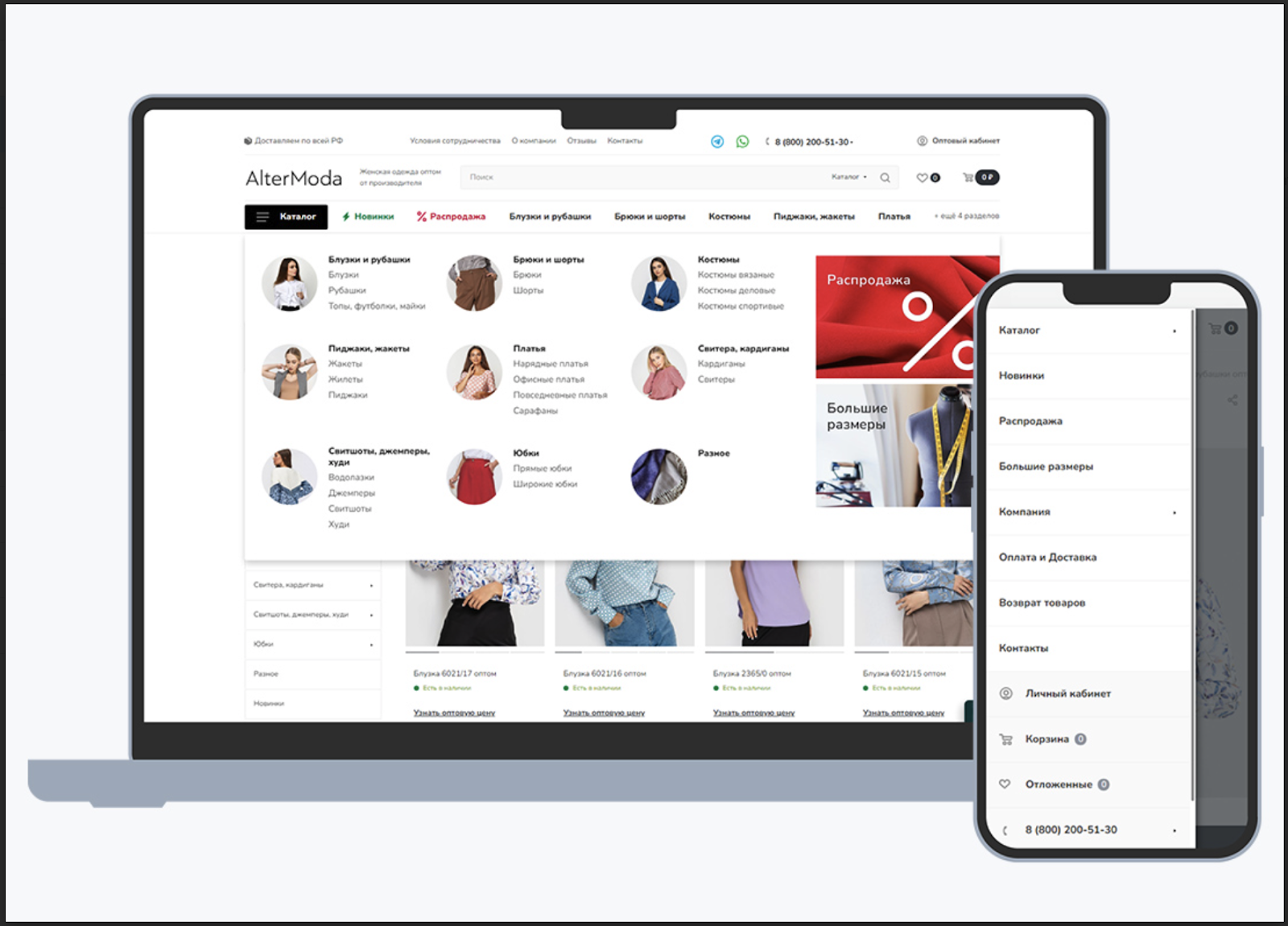 AlterModa — производитель женской одежды из Калужской области. Компания работает с 2009 года, имеет в ассортименте больше 800 моделей одежды и реализует свою продукцию через оптовых закупщиков по всей стране.