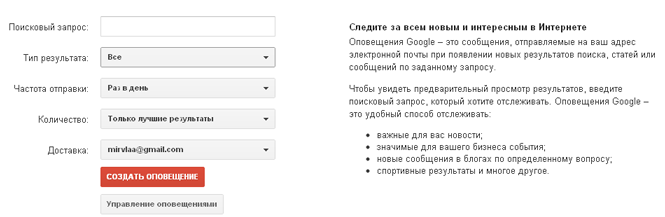 Использование довольно простое. Достаточно иметь учетную запись (почту) в Google. Для создания задания на мониторинг надо: