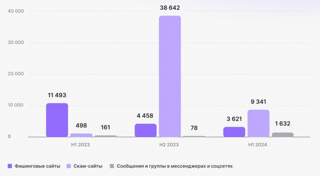 По данным аналитиков Digital Risk Protection (DRP) компании F.A.C.C.T., основными источниками привлечения аудитории на скамерские и фишинговые ресурсы стали группы и аккаунты в мессенджерах и соцсетях. Их количество в первом полугодии 2024 г. значительно возросло - было заблокировано 1 632 постов и групп, что почти в 7 раз больше, чем за весь 2023 год.