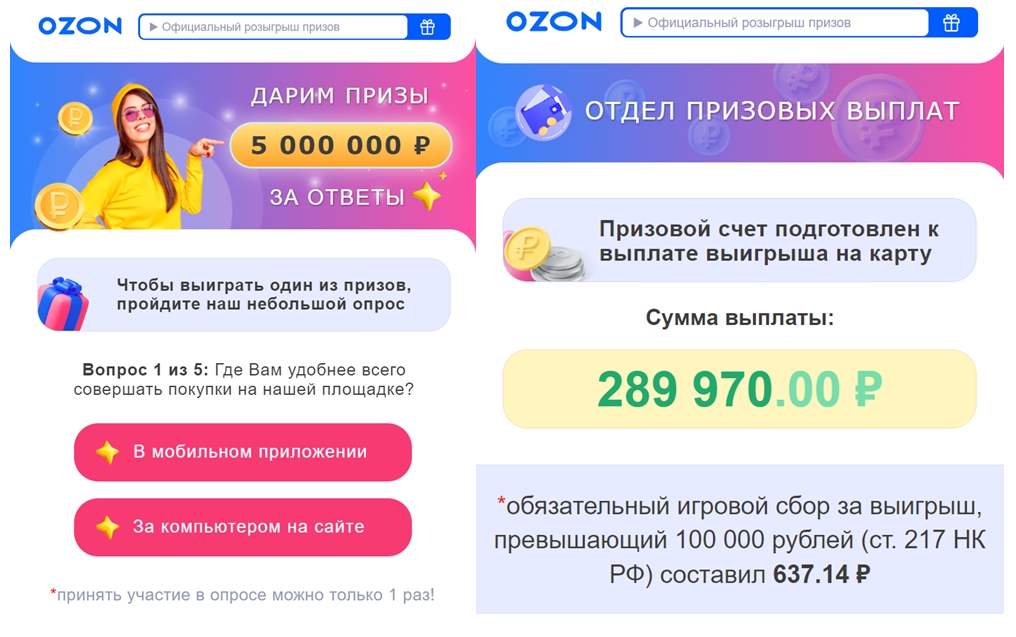 Ozon и российский разработчик F.A.С.С.T. рассказали об успехах в борьбе с мошенниками в онлайне. В первом полугодии 2024 года компании заблокировали 9 341 скам-ресурсов и 3 621 фишинговых сайтов, которые пытались использовать бренд маркетплейса для обмана пользователей. Основными видами мошенничества, с которыми чаще всего сталкивались специалисты, стали интернет-аферы с фейковыми розыгрышами от имени маркетплейса, фишинговые страницы авторизации, покупки или возврата товара. Главный способ продвижения мошеннических сайтов в этом году - это реклама в мессенджерах и соцсетях.