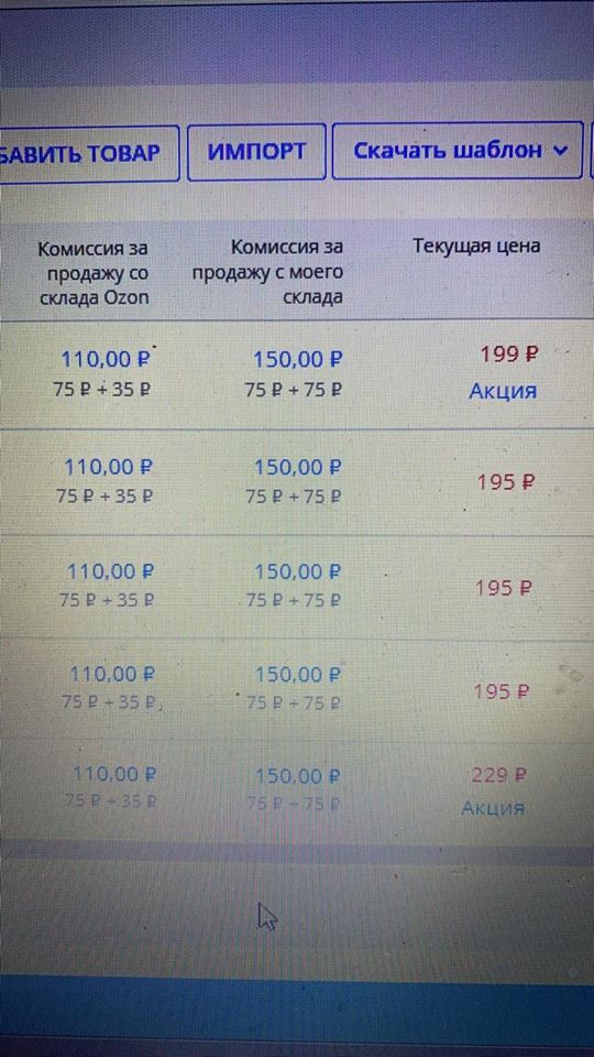 В то же время, с 1 мая Ozon ввёл понятие "минимальной комиссии" и поднял комиссии за продажу товаров в нескольких категориях, в том числе относящихся к товарам повседневного спроса. Представители селлеров утверждают, что теперь торговать дешёвыми товарами на площадке стало невыгодно. Вот, например, скриншот "личного кабинета" одного из продавцов.