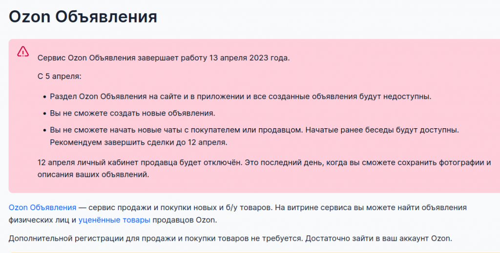 Озон объясняет это решение необходимостью перераспределения ресурсов на другие сервисы для продавцов. Сервис "Объявления" использовали до 60% пользователей в этих регионах, и было размещено объявлений о продаже более чем 145 тысяч товаров.