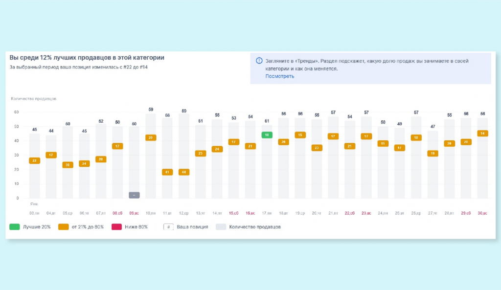 - ближайшего конкурента (без конкретных названий - показатель других продавцов, которые в разные периоды были на позицию выше)