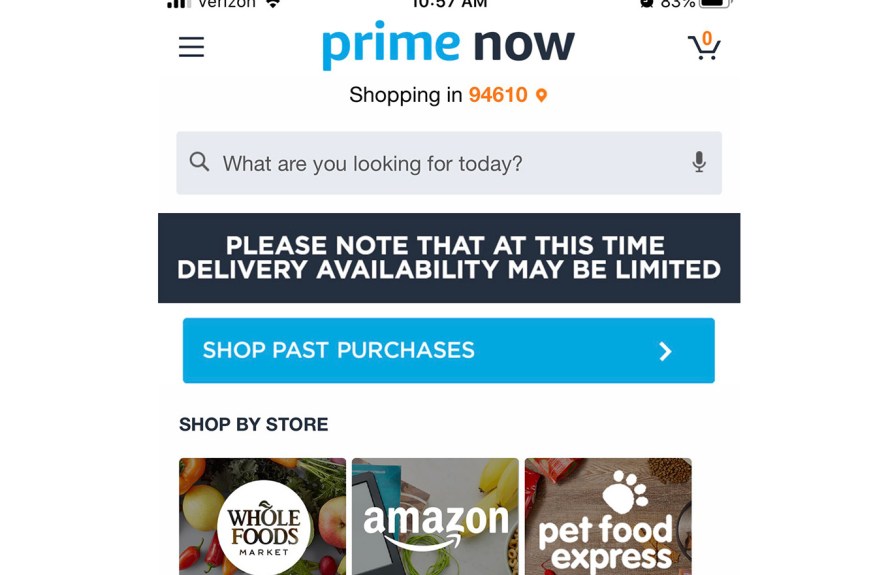 Когда журналист CNBC попытался приобрести упаковку туалетной бумаги Cottonelle, приложение Prime Now не позволяло добавлять более двух единиц продукта в свой заказ одновременно. Существовали также ограничения по количеству воды в бутылках Whole Foods 365.