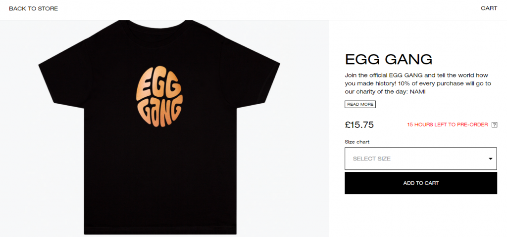 Как оказалось, вся эта история была лишь маркетинговой акцией британского бренда одежды. В аккаунте появилась ссылка на магазин, который торгует футболками и регланами с принтом яйца и надписью "я лайкнул яйцо". Стоимость вещей колеблется от 15 до 25 фунтов стерлингов за единицу.