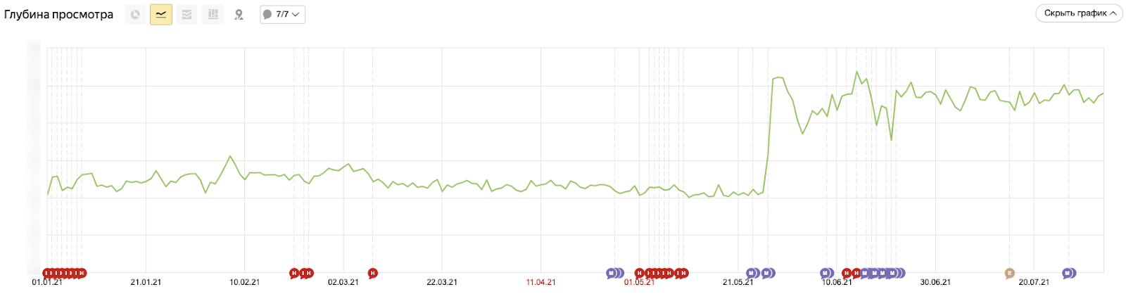 1. Глубина просмотра. Рост по показателям почти в два раза.