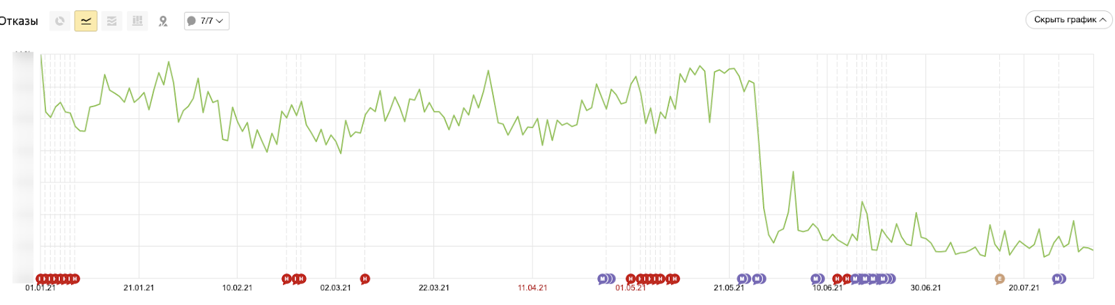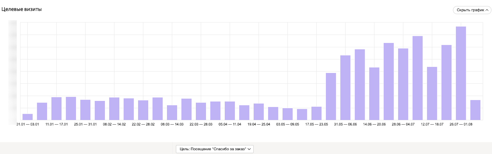 Мы запустили новый интернет-магазин в мае 2021 года. По графикам можно увидеть разницу в пользовательском поведении на сайте Novex до мая 2021 (запуск нового сайта) и после. Графики представлены с января 2021 по август. Абсолютные цифры скрыты, данная информация необходима для демонстрации динамики.