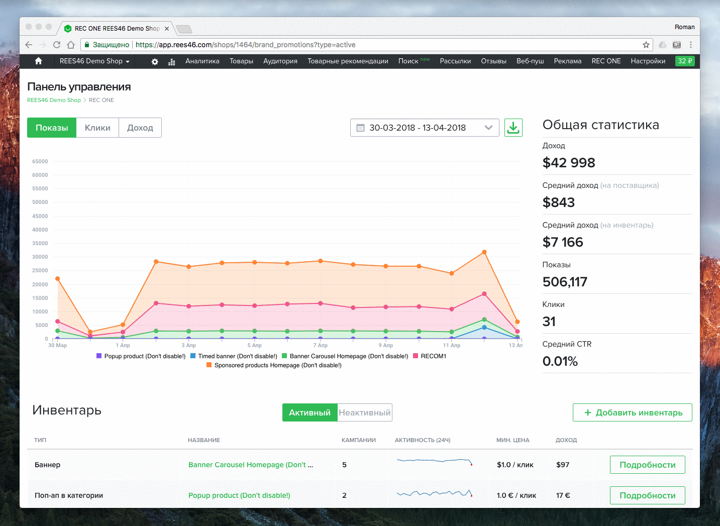 Для интернет-магазинов REC ONE — это возможность быстро создать высокотехнологичный рекламный инвентарь, кроме привычных баннеров, и получать дополнительный доход от рекламы.