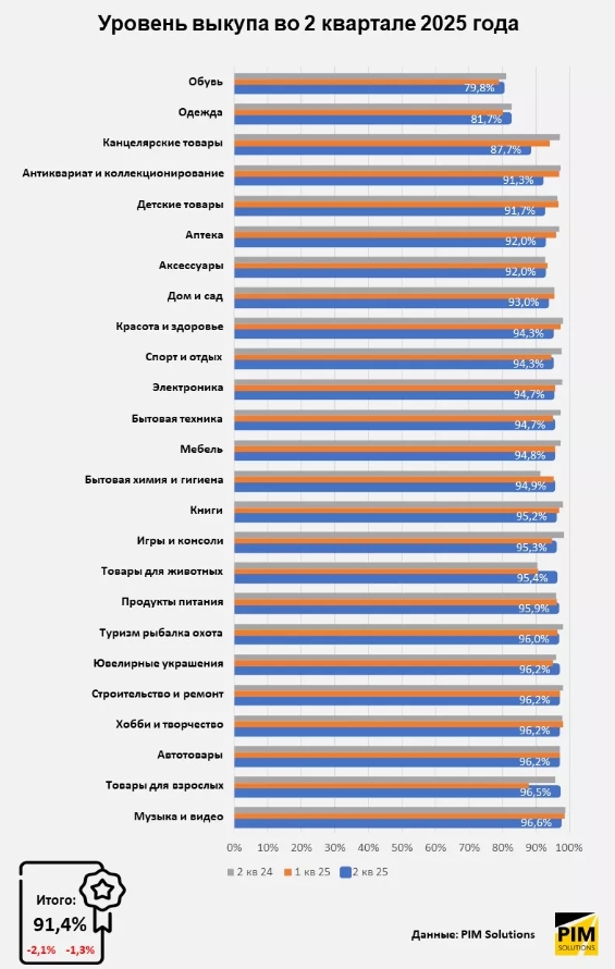 Изменения в поведении покупателей особенно заметны в сегментах повседневного спроса: "Канцтовары", "Антиквариат и коллекционирование", "Детские товары" и "Аптека" показали самое значительное снижение выкупа. Это говорит о том, что пользователи стали тщательнее фильтровать выбор и чаще отказываться от заказов, если товар или условия доставки не соответствуют ожиданиям.
