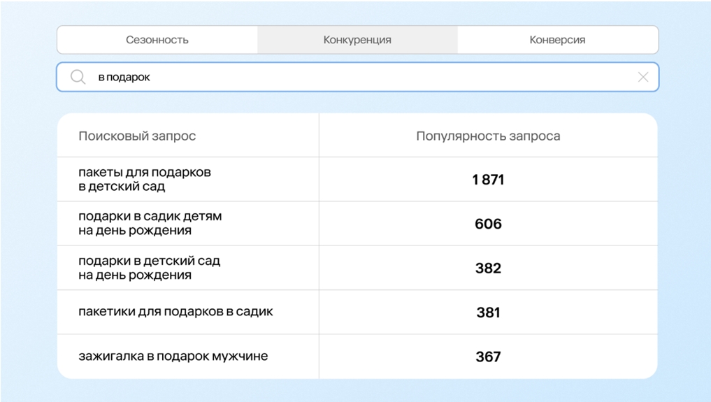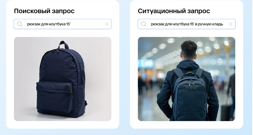 Ситуационные запросы работают иначе - они отражают конкретные сценарии использования товара. Вместо "сливок" покупатель ищет "сливки для взбивания", вместо "термоса" - "легкий термос для похода". Такие формулировки повышают заметность карточек товаров в выдаче и делают их понятнее для пользователей. Это положительно влияет на конверсию - товары, которые очевидно решают задачу, покупают чаще, а количество возвратов снижается - ожидания покупателей совпадают с реальностью.