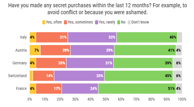 Половина потребителей в Европе совершали скрытые покупки в течение последнего года. Как показало исследование YouGov, проведенное по заказу онлайн-ритейлера Galaxus, ключевыми причинами такого поведения являются смущение и желание избежать конфликтов в семье.