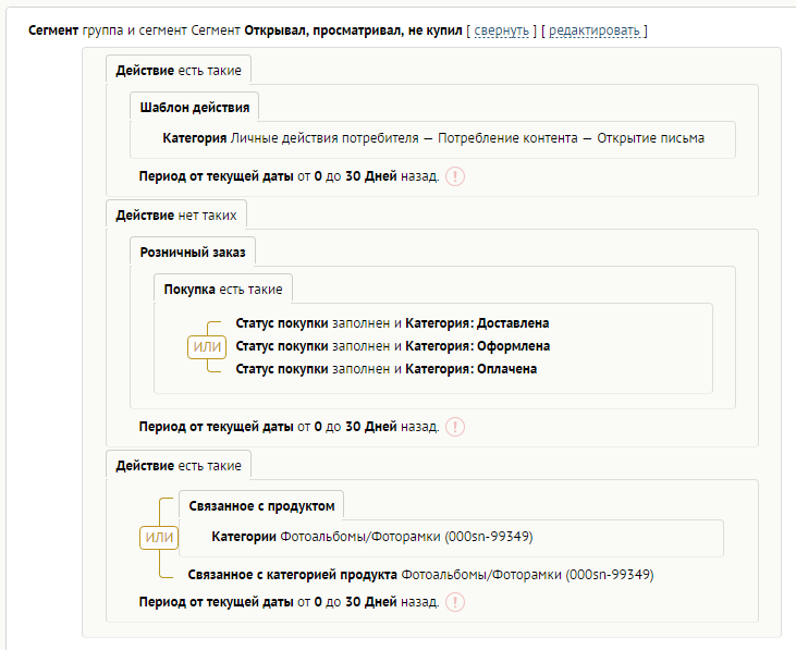 «Открывал, просматривал, не купил» – за последние 30 дней открывал письма, просматривал фотоальбомы, но ничего не купил