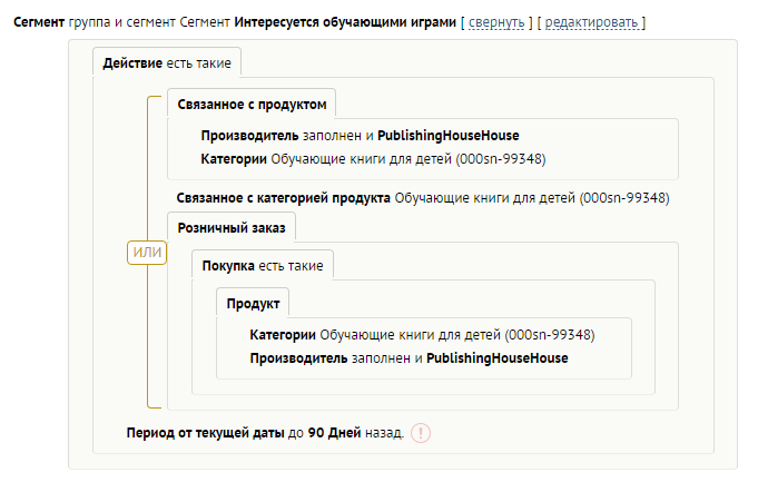 «Интересуется обучающими играми» – или просматривал продукт такой категории или страницу с такими продуктами или покупал
