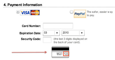 Если в вашем интернет-магазине требуется проверка кредитной карты с помощью CVV кода, который указан на обратной стороне кредитной карты клиента, убедитесь, что вы доходчиво объяснили ему, где он находится. Начинающие онлайн-покупатели, возможно не знают, где он расположен, т.к. покупки в розничных магазинах не подразумевают его использования. Покажите наглядно, где он находится.