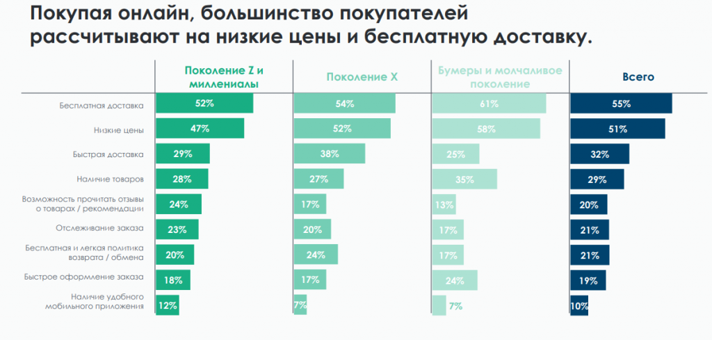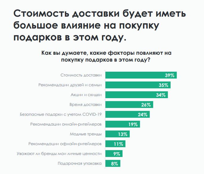 Помимо акций и скидок, которые 34% опрошенных отметили как важный фактор, для 39% респондентов имеет значение стоимость доставки.