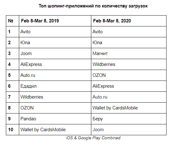 Важным трендом в 2019 году стало снижение активности китайских площадок, говорят исследователи. В частности, AliExpress оказался лишь на шестой строчке рейтинга (год назад был на 4), а Joom - на десятой (был на 3).