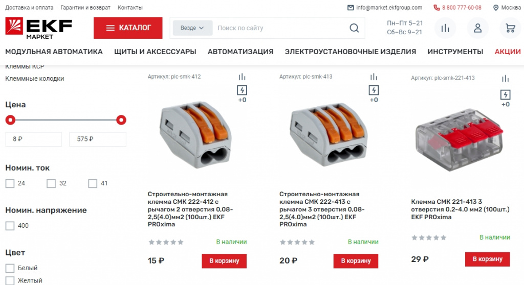 Специально под новый проект EKF обновил свой интернет-магазин. Сайт EKF Маркет с интуитивно понятным интерфейсом и моментальным поиском работает ещё быстрее. В интернет-магазине представлен широкий ассортимент товаров EKF: всего здесь 17000 артикулов из категорий модульная автоматика и реле, электромонтажные и электроустановочные изделия, светотехника, щиты, тёплый пол, умный дом и инструменты.