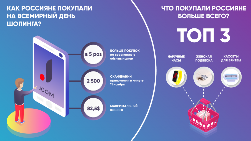 В результате акции общая сумма покупок на Joom в мире выросла в 3 раза по сравнению с обычным днем, при этом максимальный размер разового кэшбэка для одного пользователя составил 82,5 доллара США.