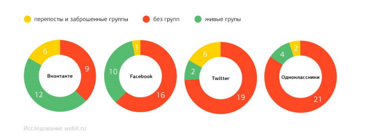 SMM даже у топовых магазинов ведется по остаточному принципу и рассматривается как один из последних маркетинговых инструментов. Популярность присутствия в социальный сетях предсказуема: на первом месте «ВКонтакте», далее Facebook, «Одноклассники» и Twitter.