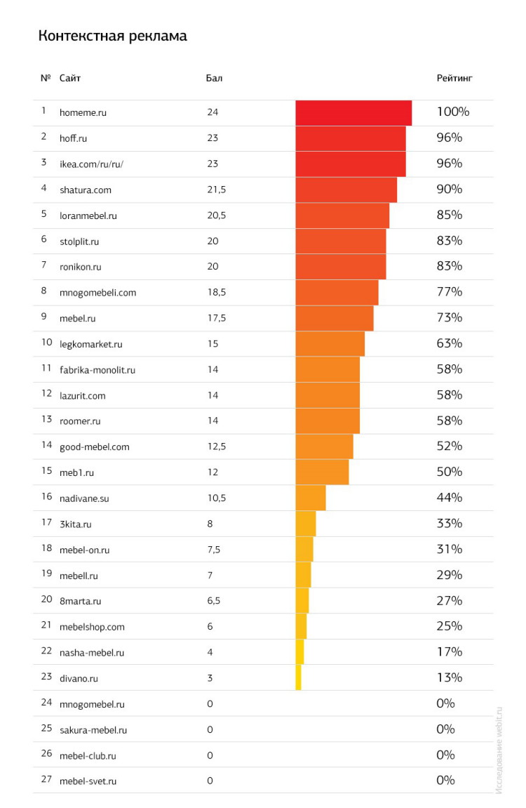 Рейтинг основан на оценке ведения рекламных кампаний, результативности поискового продвижения, качества присутствия в социальных сетях и оценке качеств сайта, которые повышают эффективность и отдачу. Оценка основана на доступной информации, которая есть в открытых источниках. Но без инсайда не обошлось, поэтому выводы интересны вдвойне.