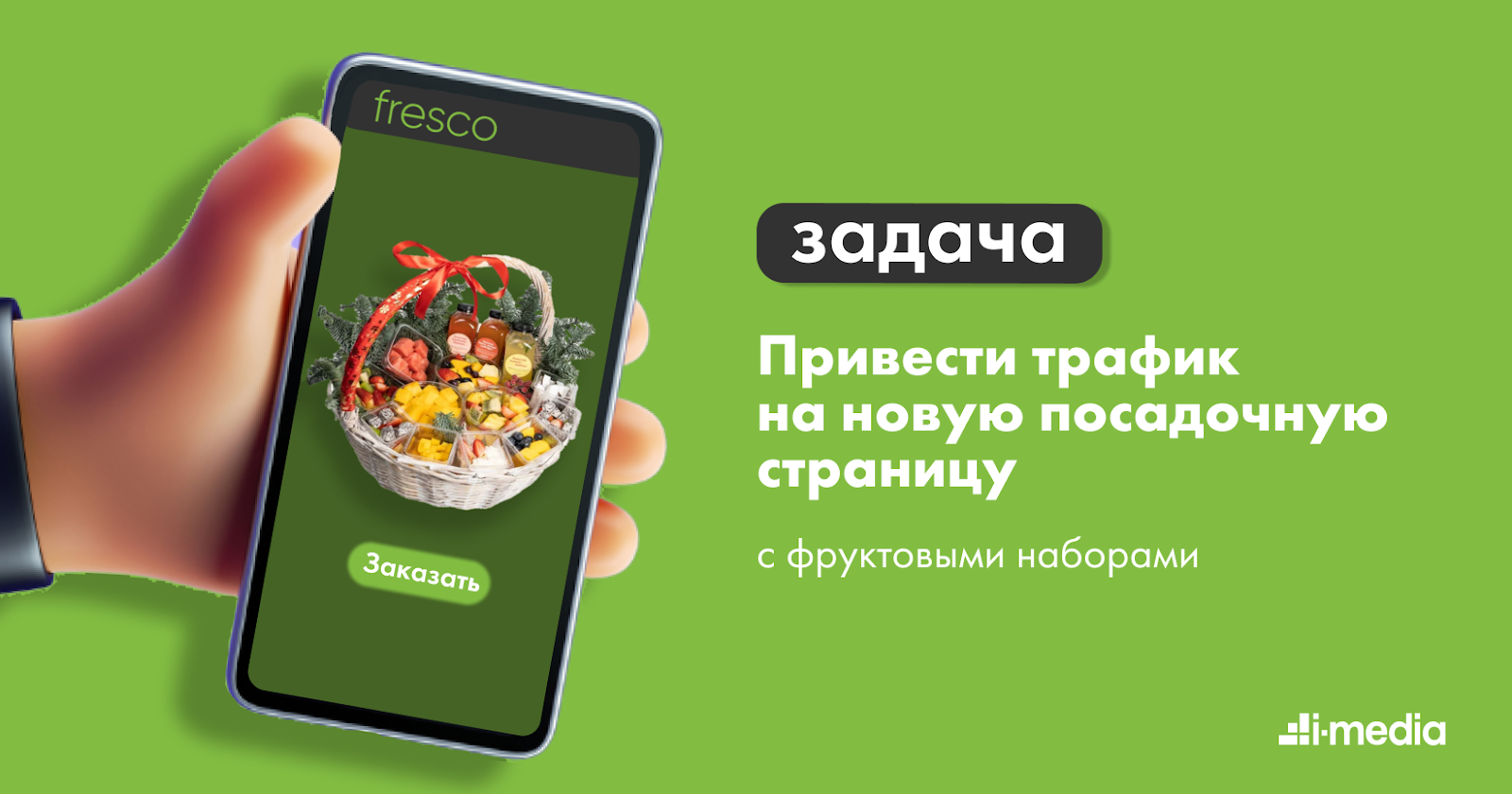 В преддверии Нового года нужно было привести трафик на новую посадочную страницу с подарочными фруктовыми наборами.