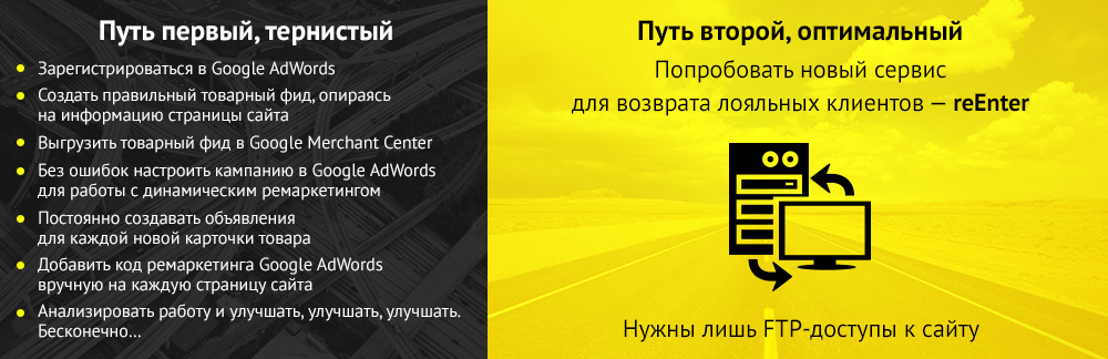 - Простота в применении. Думаю, это уже стало понятно из таблицы. Теперь вам не придется постоянно что-то «гуглить», читать мануалы, искать ролики на YouTube и так далее. Просто начните рекламную компанию в reEnter и возвращайте горячих клиентов.