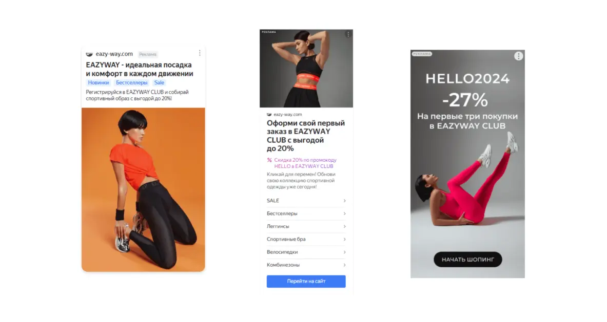 Бренду спортивной одежды EazyWay удалось, сотрудничая с подрядчиком для настройки рекламы, выявить эффективный узкий сегмент для ретаргетинга, на основе количества дней прошедших с момента брошенной на сайте корзины. За несколько месяцев были протестированы интервалы: 3, 7, 14, 30, 60 дней без покупок. Успешной оказалась аудитория пользователей, которые ушли с сайта не оплатив товар на 3 дня. Рекламное объявление вовремя возвращало их назад к целевому действию.