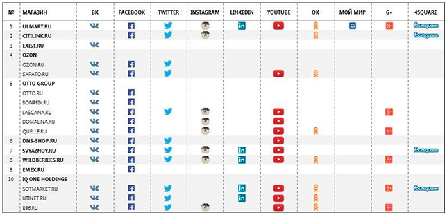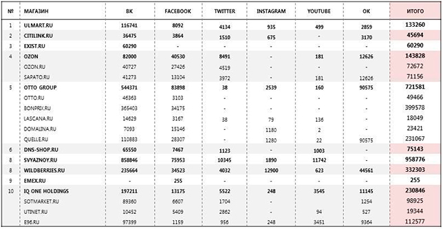 Крупнейшие интернет-магазины России в социальных сетях