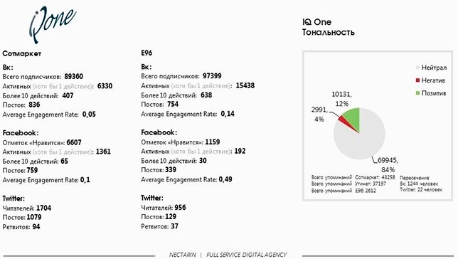 Интернет-магазины холдинга IQ One — явный лидер по количеству негативных отзывов в сети, причём большая их часть приходится на магазин «Ютинет». В то же время «Сотмаркет» лидирует по количеству позитивных отзывов.