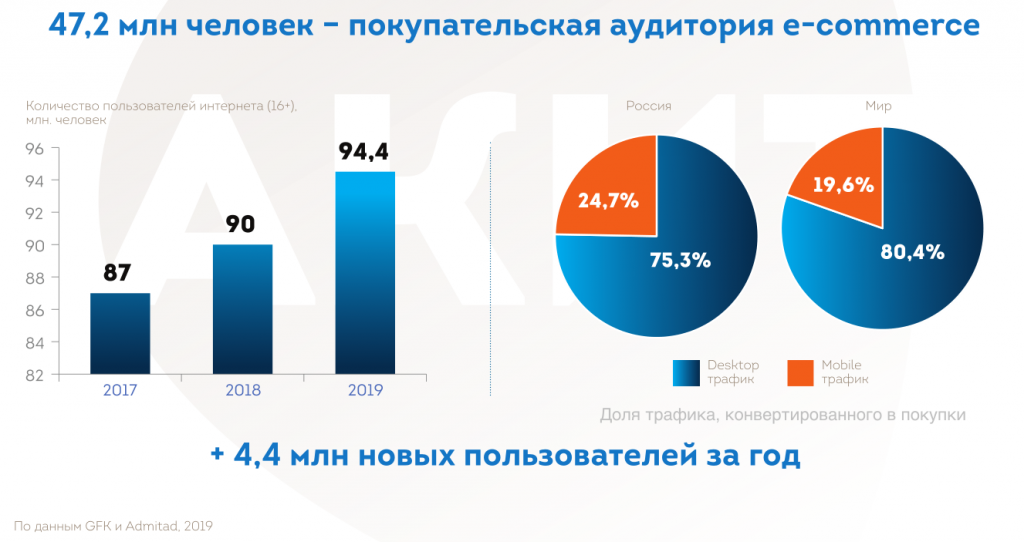 Покупательская аудитория eСommerce за год выросла до 47,2 млн человек.