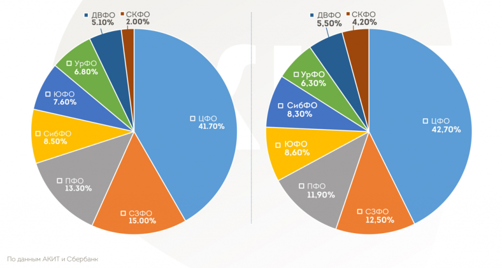 Как и в прошлом году, безусловным лидером по объёму заказов в интернет-магазинах (в денежном выражении) являются жители Центрального федерального округа и Москвы.