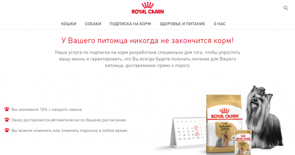 На площадке уже можно купить более 200 разнообразных товаров. При этом в компании обещают постоянно увеличивать доступный ассортимент рационов. На shop.royal-canin.ru будет работать услуга подписки на продукты.