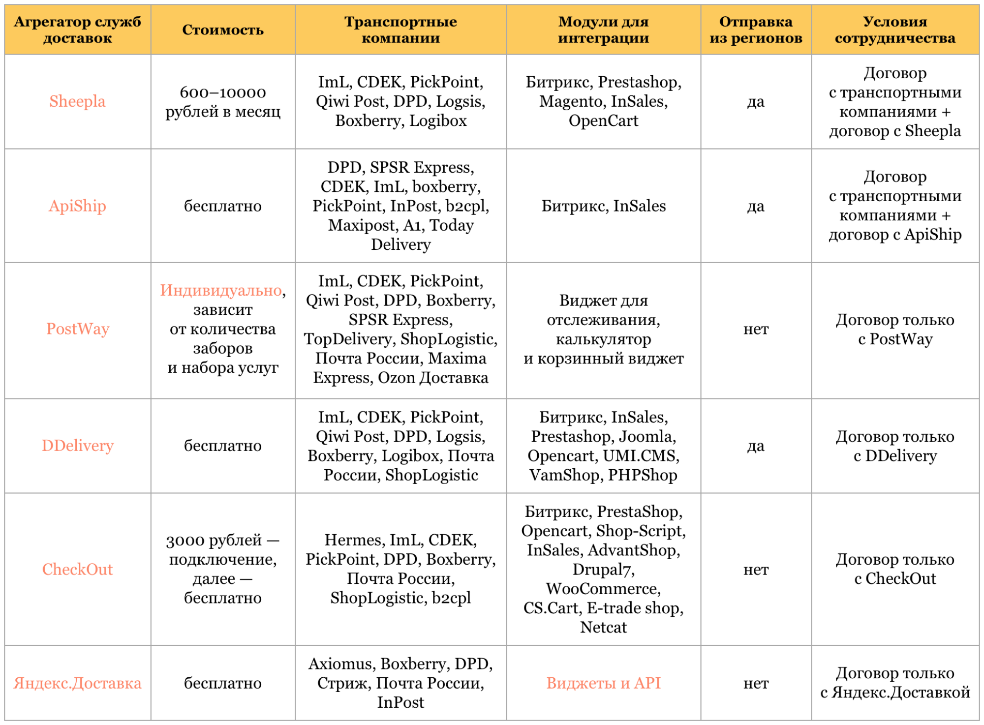 Агрегаторы сами заключают договоры с разными транспортными компаниями. И решают все проблемы с доставкой: пропажу товаров, возврат и т.д. Интернет-магазин заключает только один договор с агрегатором.