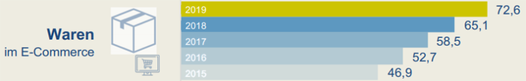 Аналитики Bundesverband E-commerce und Versandhandel (Bevh) также ожидают дальнейшего роста немецкой электронной коммерции в этом году. Согласно прогнозу, он будет всего около 10%. Но, тем не менее, оборот электронной коммерции в Германии составит порядка 80 миллиардов евро в конце года.