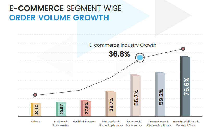 Категория "Электроника и бытовая техника" самая зрелая на индийском рынке, однако её рост остаётся существенным - 39,7%. Большая часть этого роста обусловлена аудиотехникой, наушниками, Bluetooth колонками, смарт-часами и зарядными устройствами.