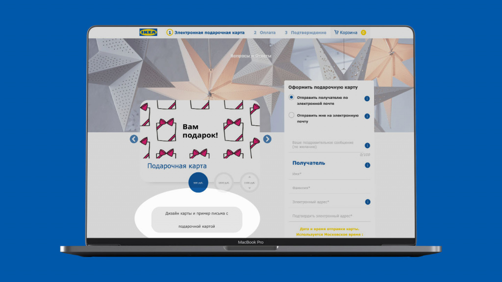 - Предпросмотр перед отправкой позволяет клиенту увидеть, как будет выглядеть подарок для получателя.