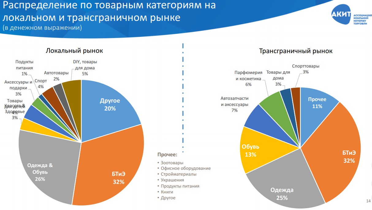 Чаще всего за рубежом покупают бытовую технику и электронику (32%), одежду (25%), обувь (13%). Интересно, что именно такой сегмент, как обувь, всерьез отличают российский и трансграничный рынок. Доля этой категории в нашей стране составляет всего 3% от всех онлайн-продаж.