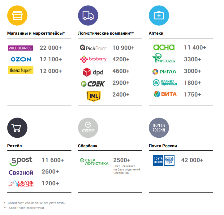 На данный момент на рынке присутствует несколько типов сетей ПВЗ и постаматов: