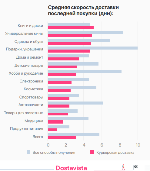 Быстрее всего доставляются продукты питания и медицинские товары. Зато дольше всего идут книги и диски.